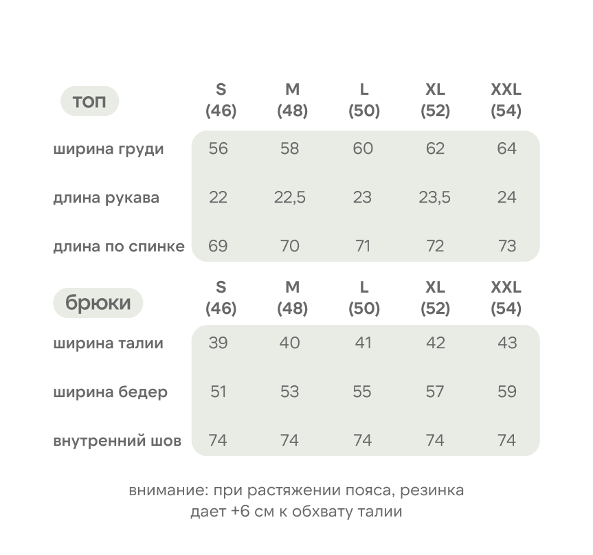 На Фёдоре топ размера XL и брюки размера XXL Параметры Фёдора: Обхват груди: 112см; Обхват талии: 92см; Обхват бедер: 108см; Рост: 190см; Размер: XL и XXL