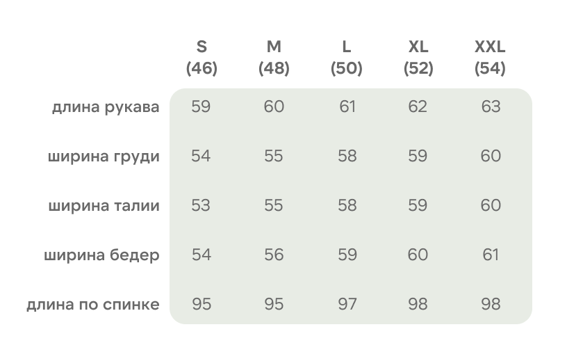На Кирилле размер XL Параметры Кирилла: Обхват груди: 72см; Обхват талии: 72см; Обхват бедер: 96см; Рост: 189см; Размер: XL(50)