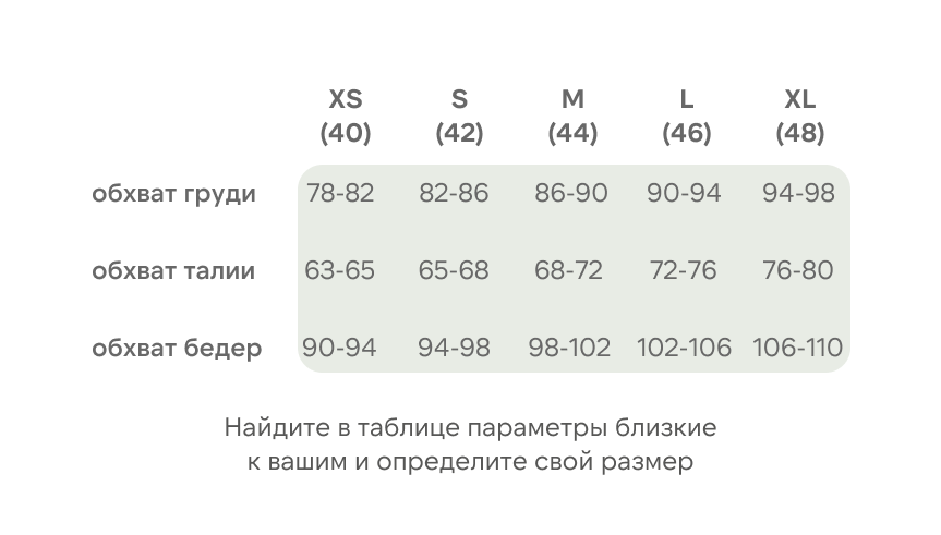 На Ульяне размер S Параметры Ульяны: Обхват груди: 85см; Обхват талии: 61см; Обхват бедер: 92см; Рост: 178см; Размер: S(44)